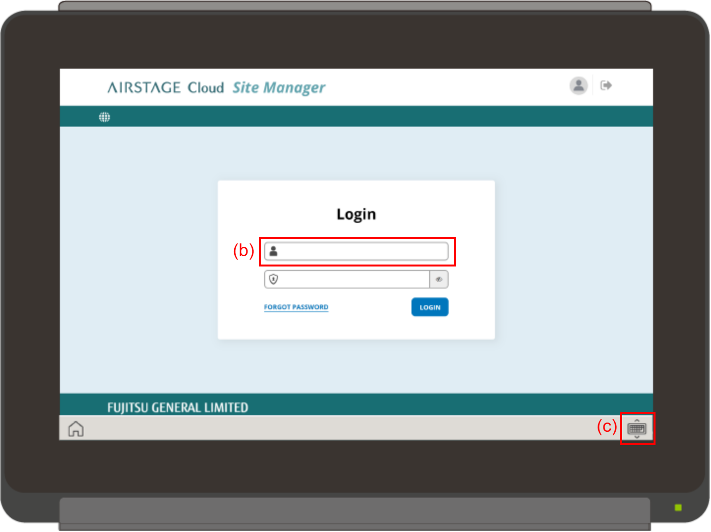 - Tap the input area (b) on the touch screen of the AIRSTAGE Edge Controller.