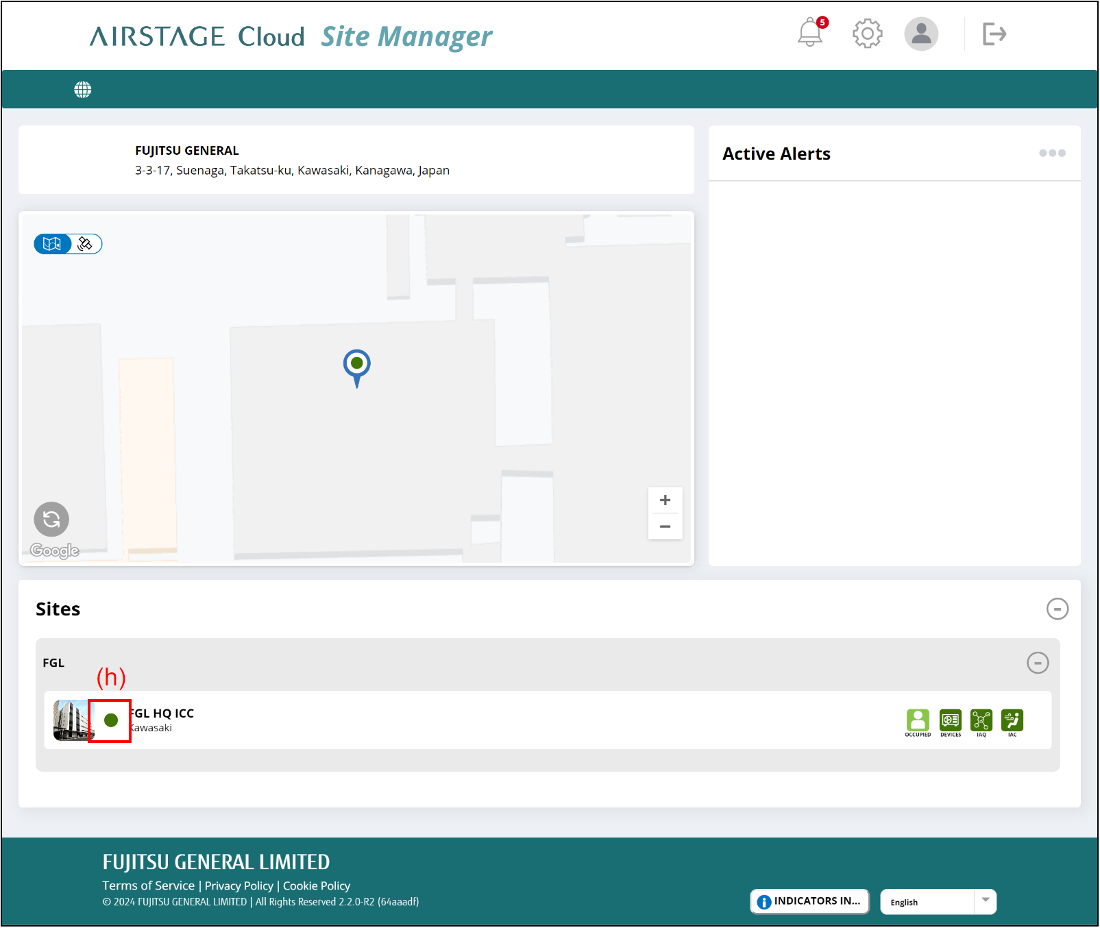 5. When AIRSTAGE Cloud Edge Supervisor reboots automatically and it is assigned to the Site, a red square icon is displayed as shown in (g). When the assignment to Site is complete, it changes to a green round icon as shown in (h). It takes 20 to 30 minutes to complete the assignment.