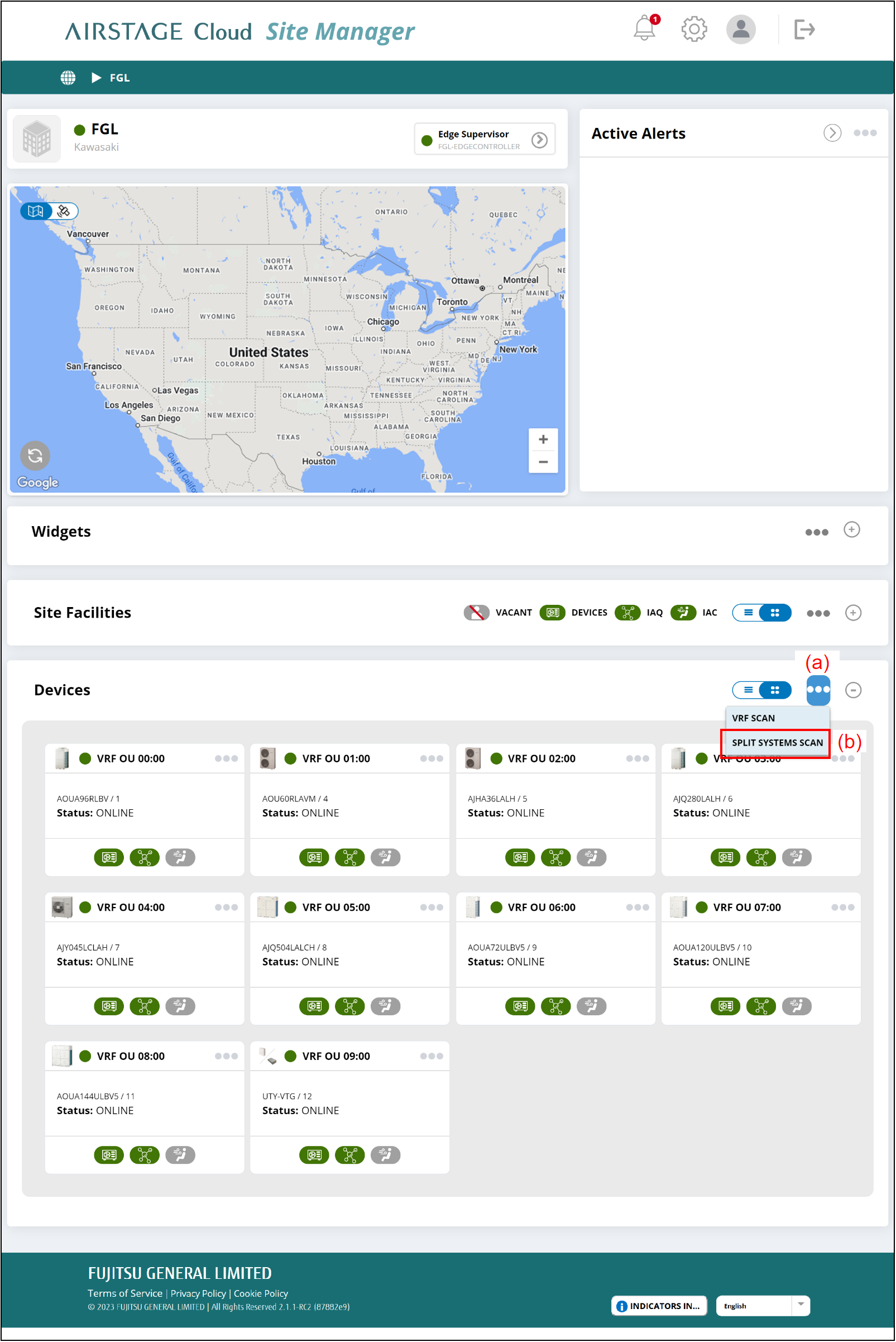 - Select the button (a) of “Devices” on the Site dashboard screen.