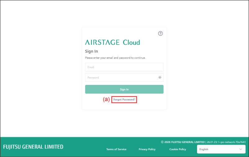 - Select [FORGOT PASSWORD] from link (a) on “Login” screen.