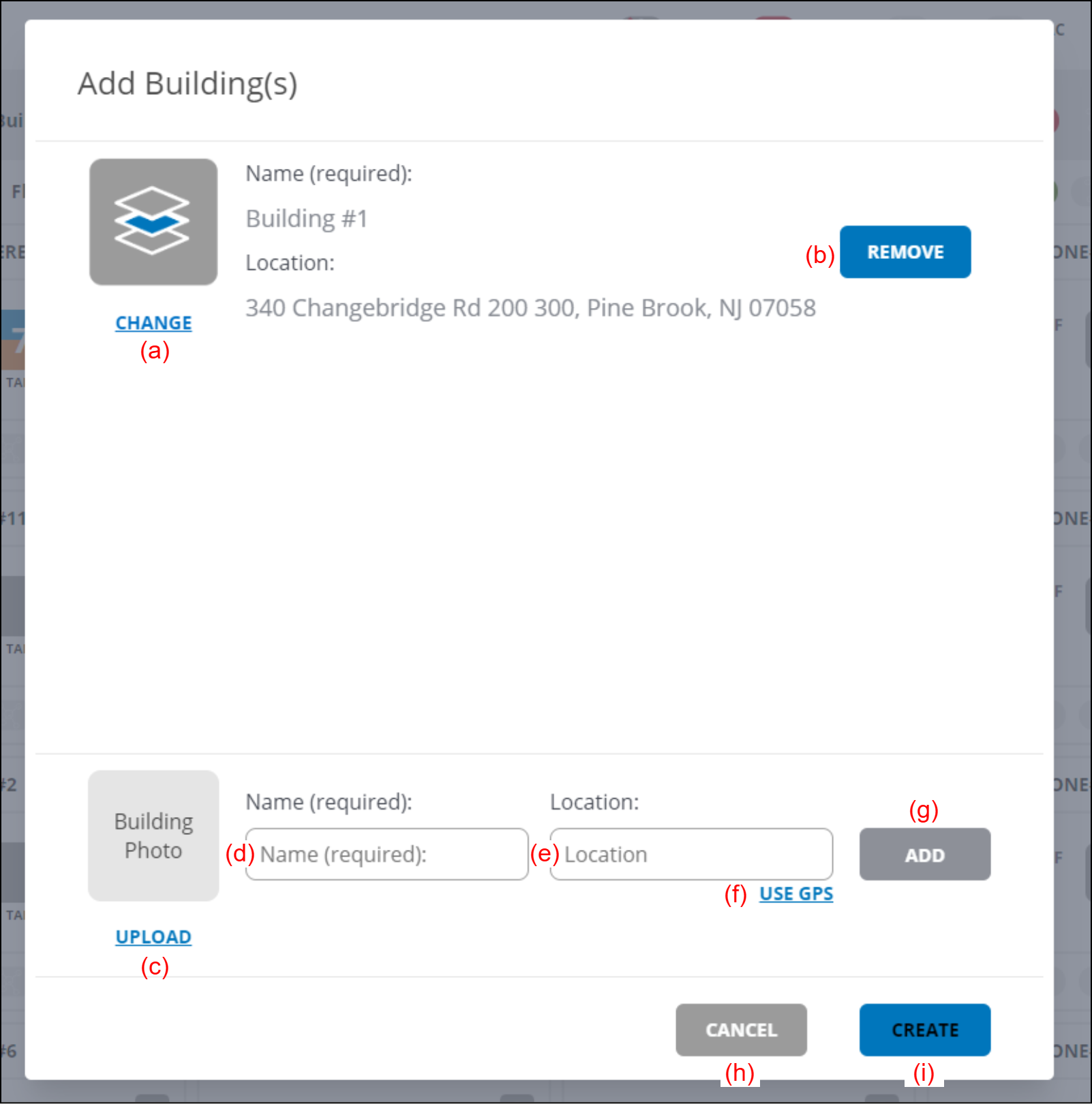 - Select [Add Building] from link menu (a) on “Site Dashboard” screen.
