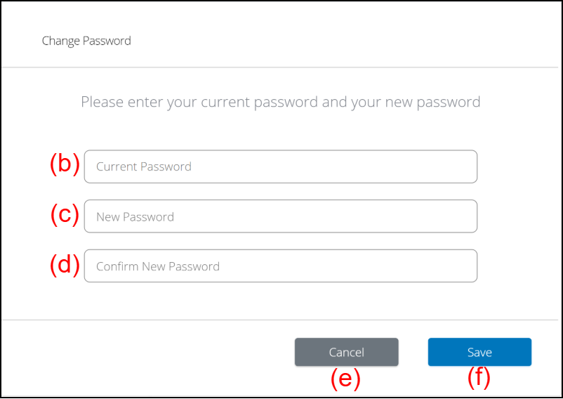 If you want to close the window without changing the password, select the button (e).