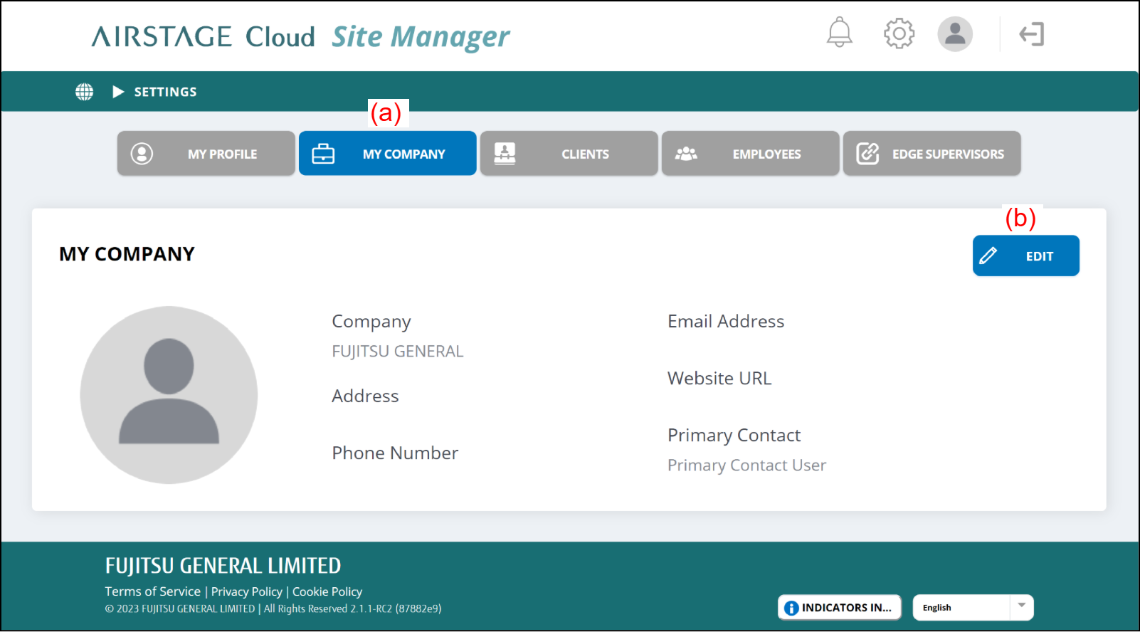 "My Company" screen will be shown and you can check your company information. - To edit your company information, select the button (b).