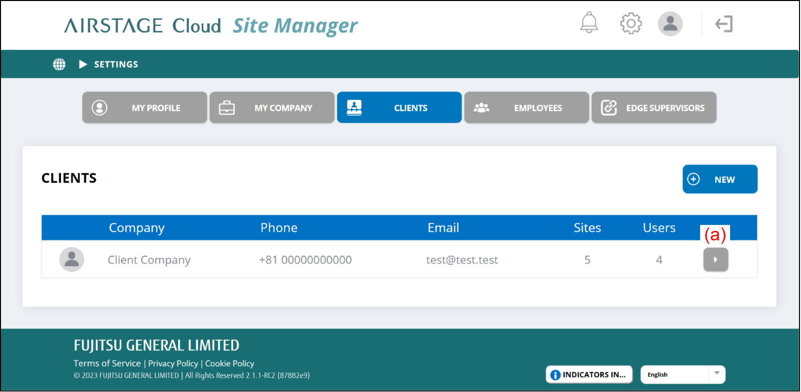 | Sites | You can check, edit, add, or delete the Sites under the client. |