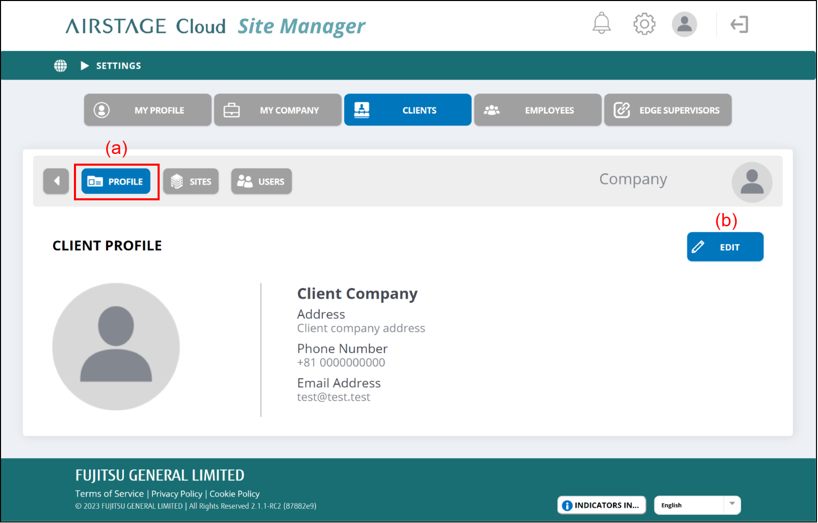 "Client Profile" screen will appear. - Select the button (b) to edit or delete the client's profile.