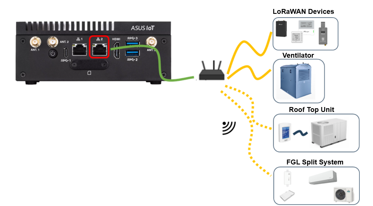 Connection of Ventilator, Roof top unit, FGL Split System and LoRaWAN devices, etc.