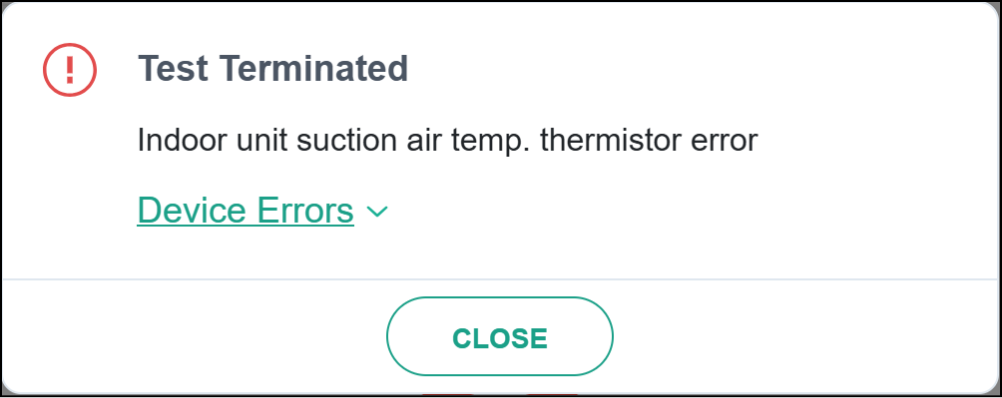 This message is displayed if the test fails. When tapped, the reason of "terminated" appears and the details can be checked.