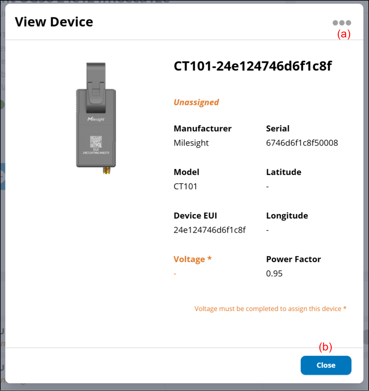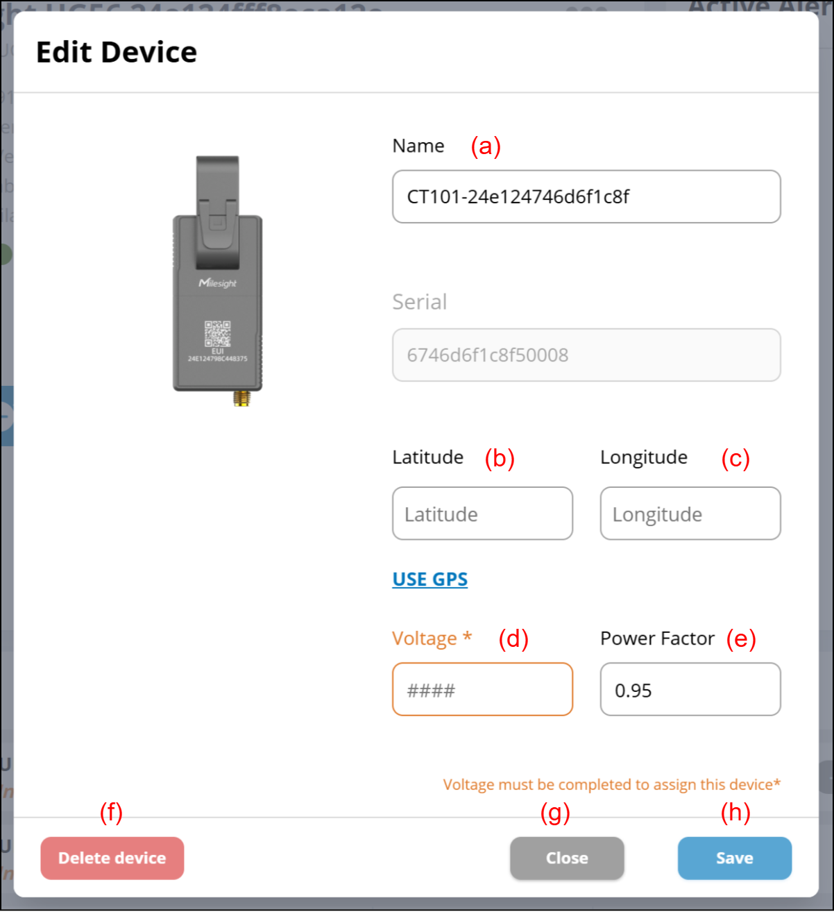 (d) Enter the voltage (V) to be measured in this CT. The default is not entered, and this CT cannot be assigned to Zone or DUC unless the voltage is entered.