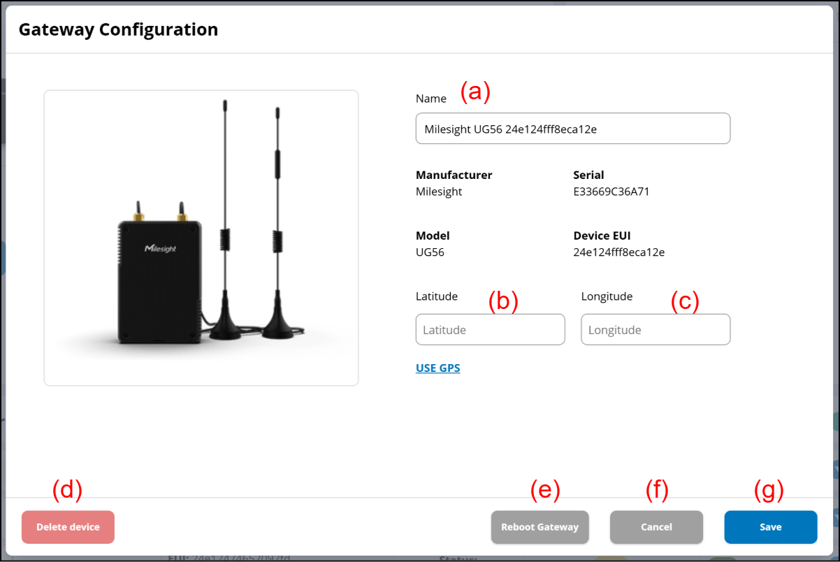 (a) LoRaWAN Gateway information